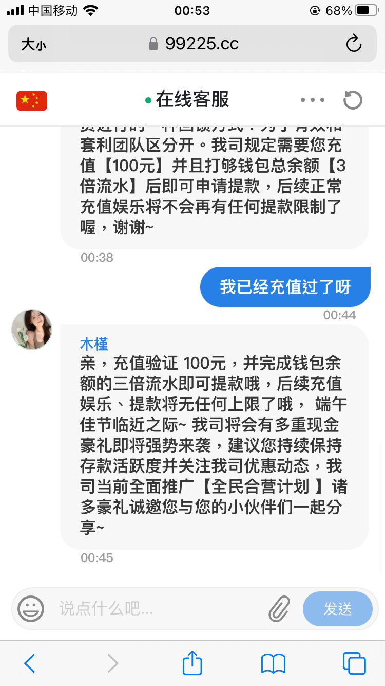 澳门新葡京8558.cpm 黑网曝光 2025-5-27 106.4k 40 429_5SXX5T5QPEEBV4T.png 429_TAZ7YBX8NG78JD4.png 黑台,充值过了签到金打出来不给提,需要充值100然后打平台钱包余额的3倍流水说之后不用充值,第二次打出来也还是这样说,第一次打够流水后提款400,只出了188,大家不要去充值